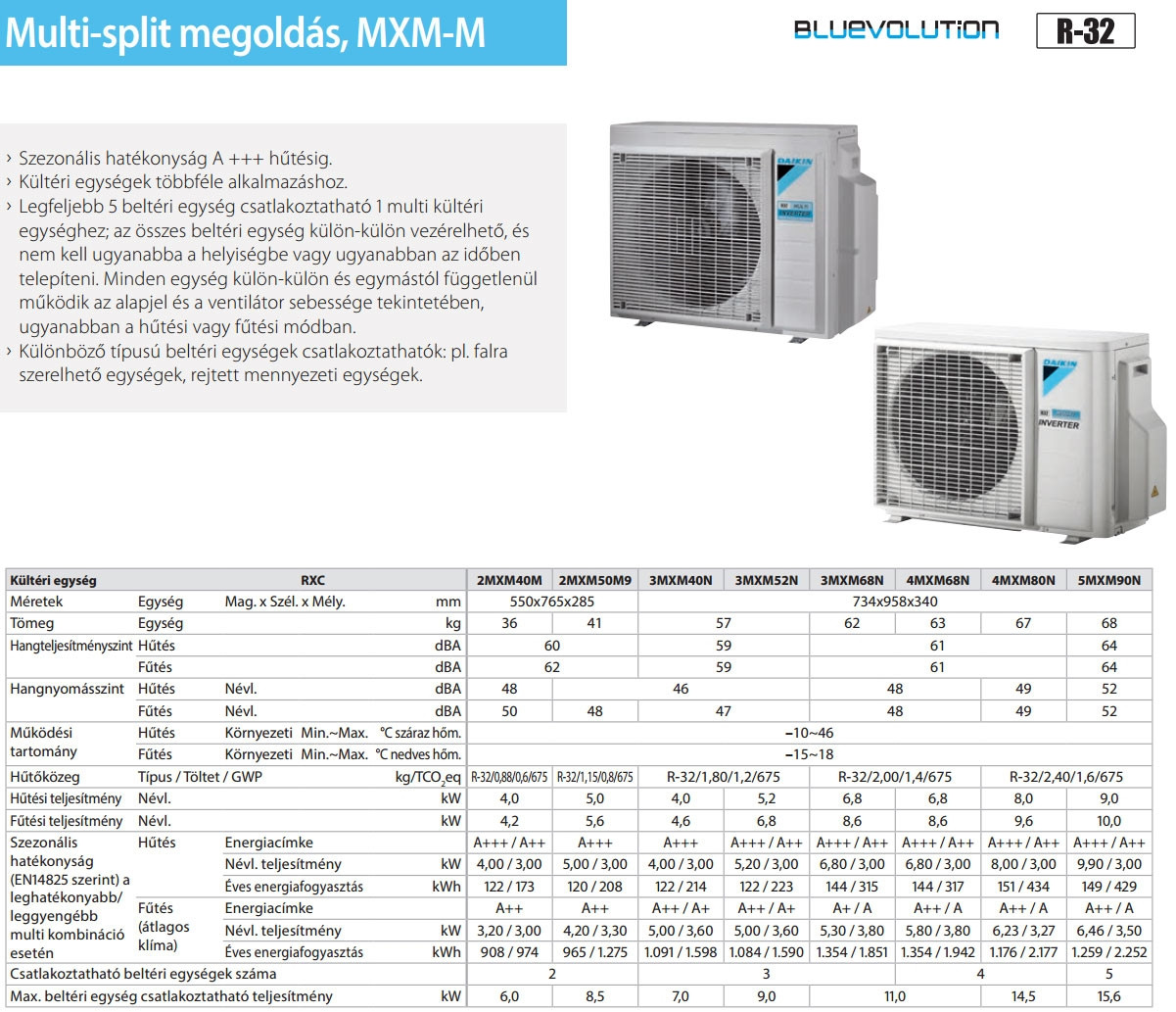 A Daikin 3MXM52A8 Multi klíma kültéri egység (max. 3 beltéri egységhez) fontos tulajdonságai: