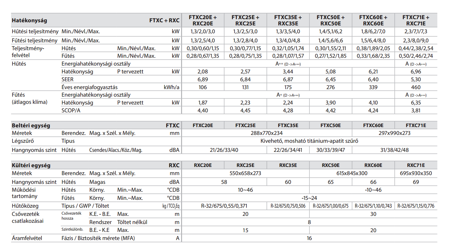 A Daikin FTXC25E / RXC25E általános szerelési információi: