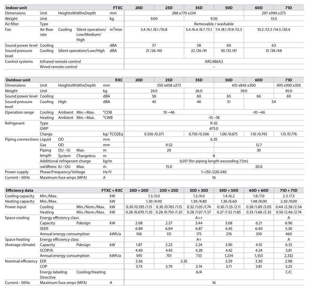 A Daikin FTXC50E / RXC50E általános szerelési információi: