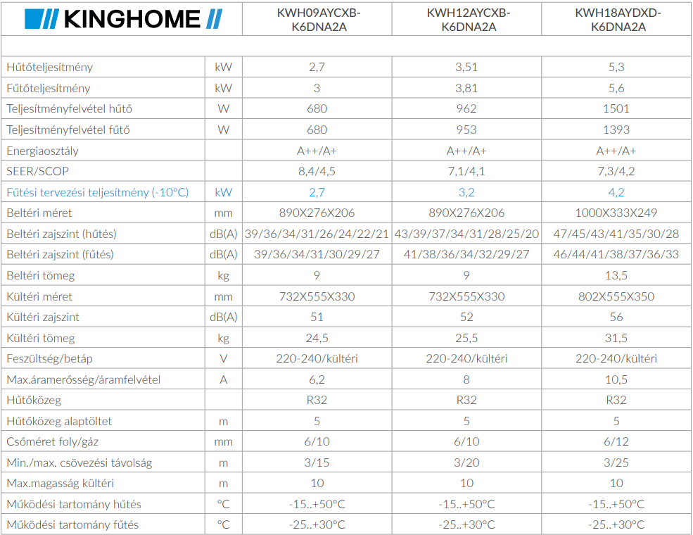 A Kinghome KWH09AYCXB-K6DNA2A Maximus Inverteres Split klíma fontos tulajdonságai: