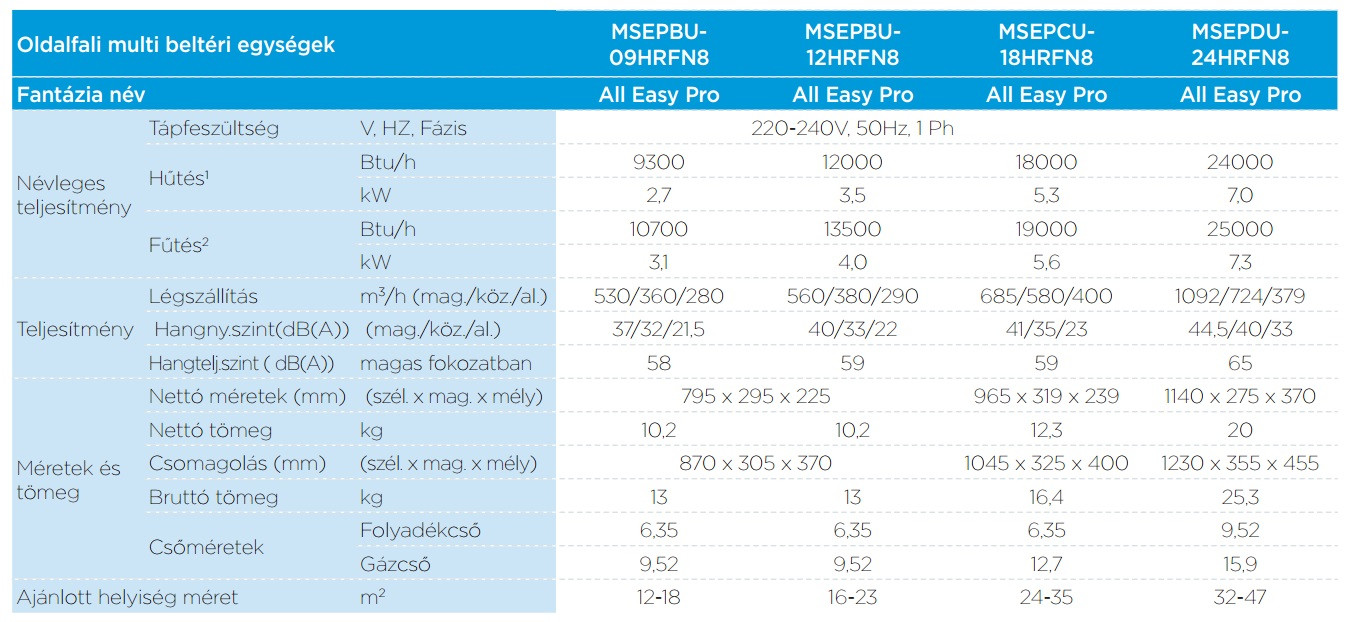 A Midea MSEPDU-24HRFN8 All Easy Pro oldalfali multi beltéri egység fontos tulajdonságai: